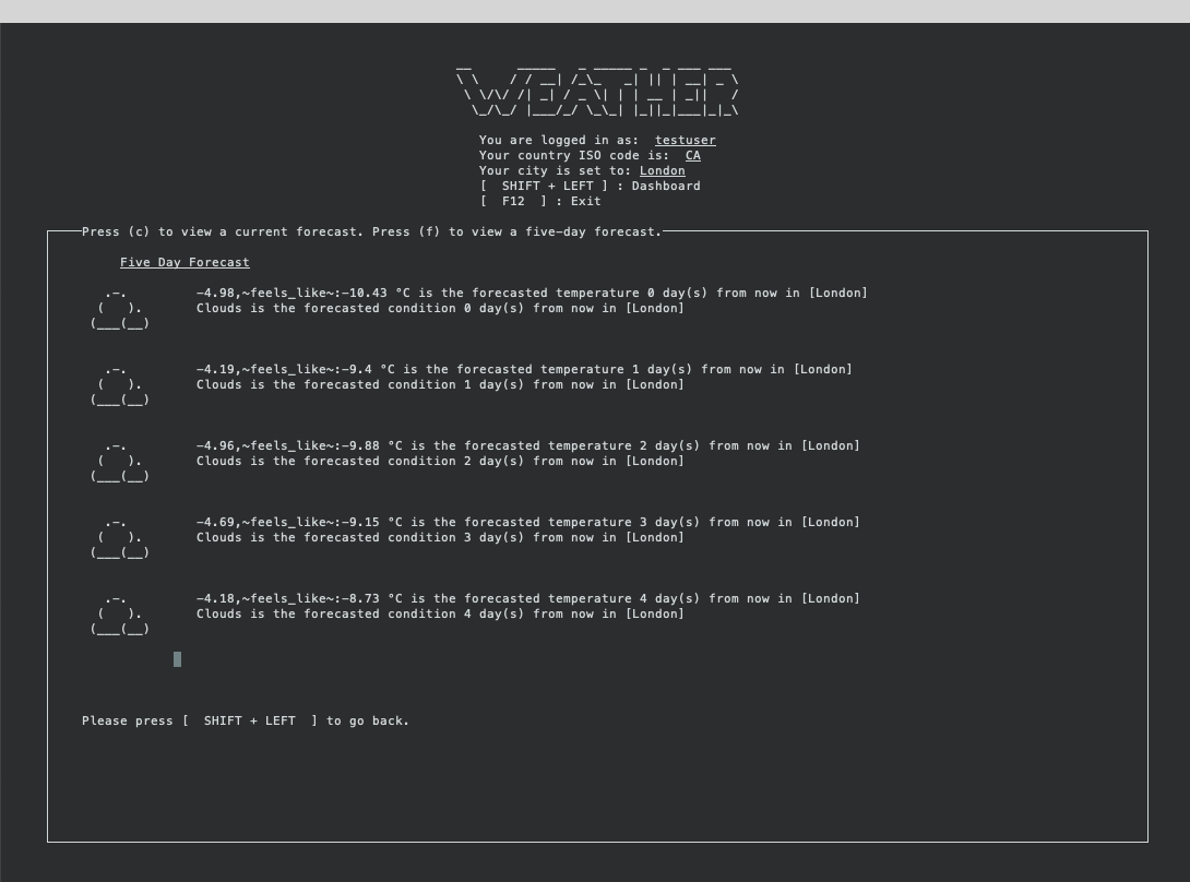 A command-line based dashboard created for the Raspberry Pi that can retrieve news headlines, the current weather, and statutory holidays. It was built using C++ and ncurses for a unique text-based UI. It connects to various APIs and is meant to be a continually running on-screen information hub that can be customized for each user.